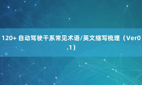 120+ 自动驾驶干系常见术语/英文缩写梳理(Ver0.1)